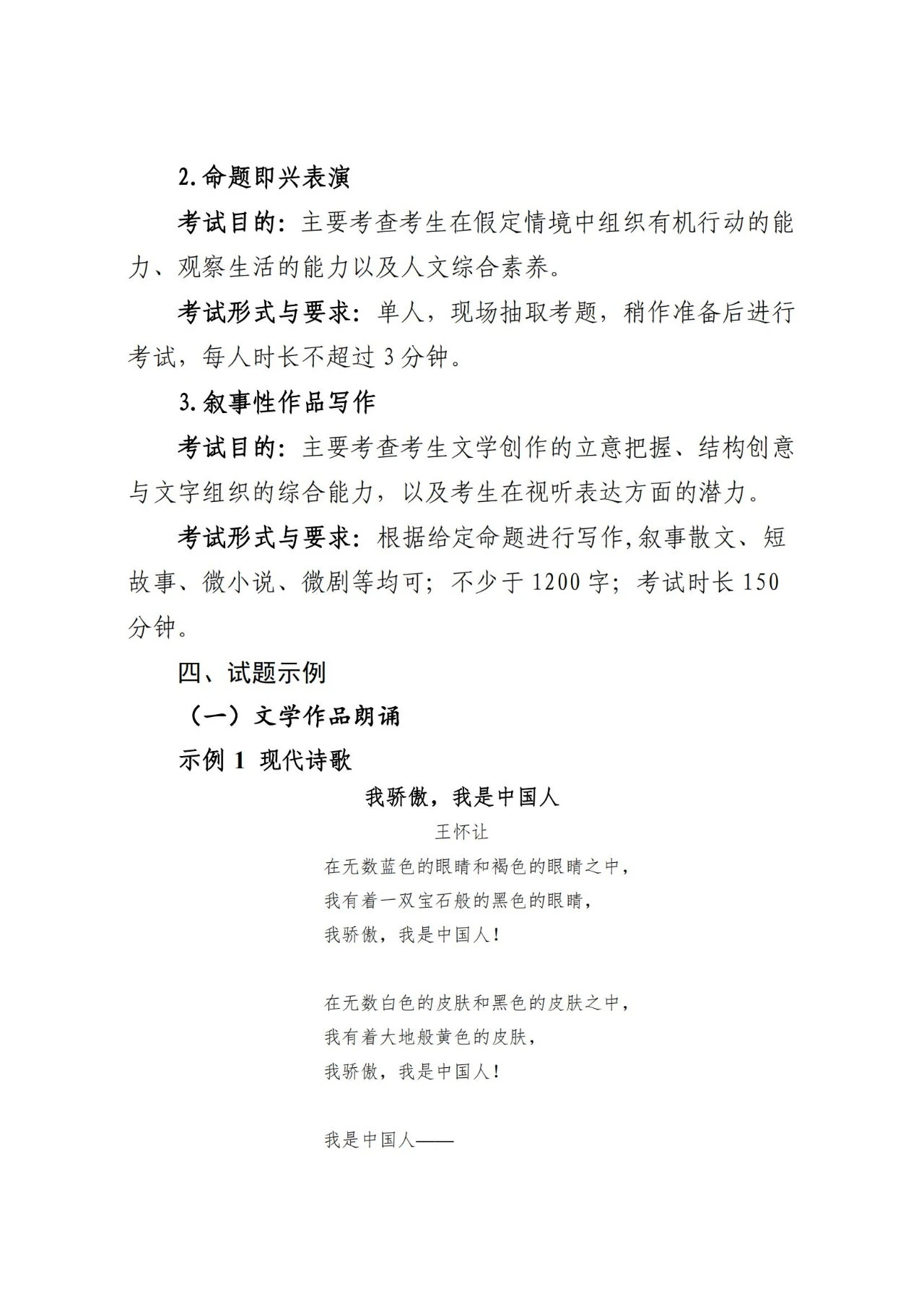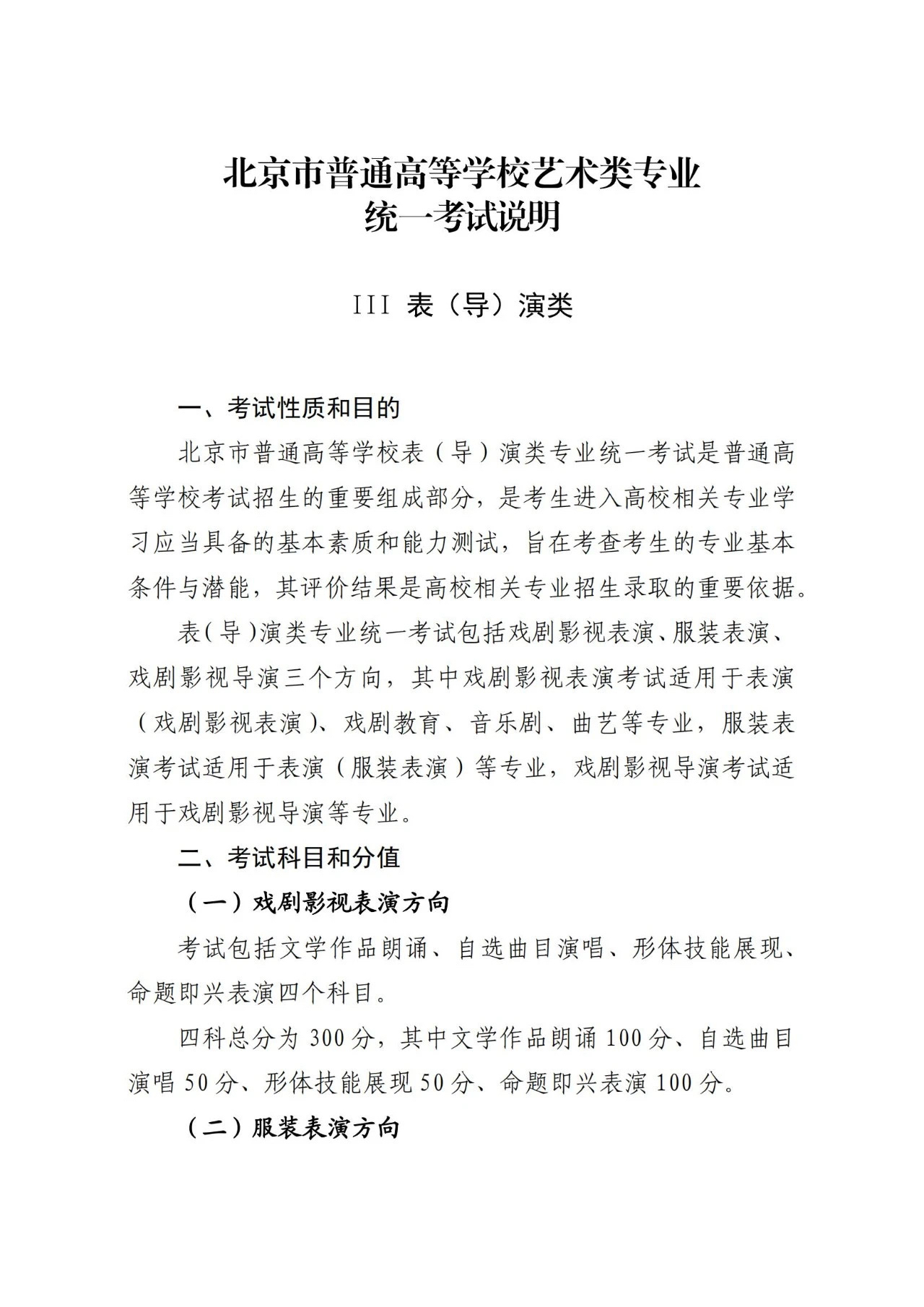 考试内容和形式详见下方《北京市普通高等学校艺术类专业统一考试说明(表导演类)》图片。