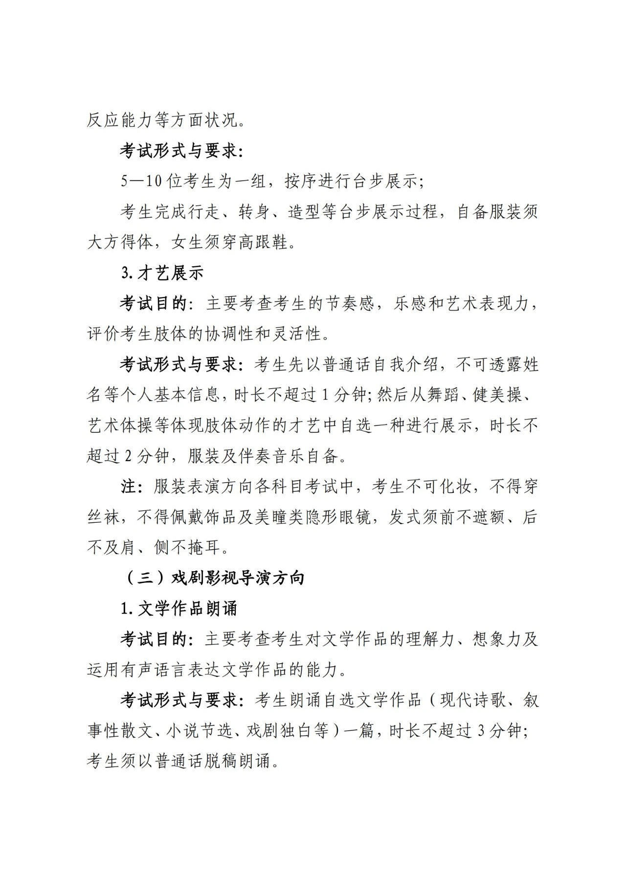 (3)才艺展示科目:考生可以根据才艺特点自备服装,着装要大方得体,避免低俗化。