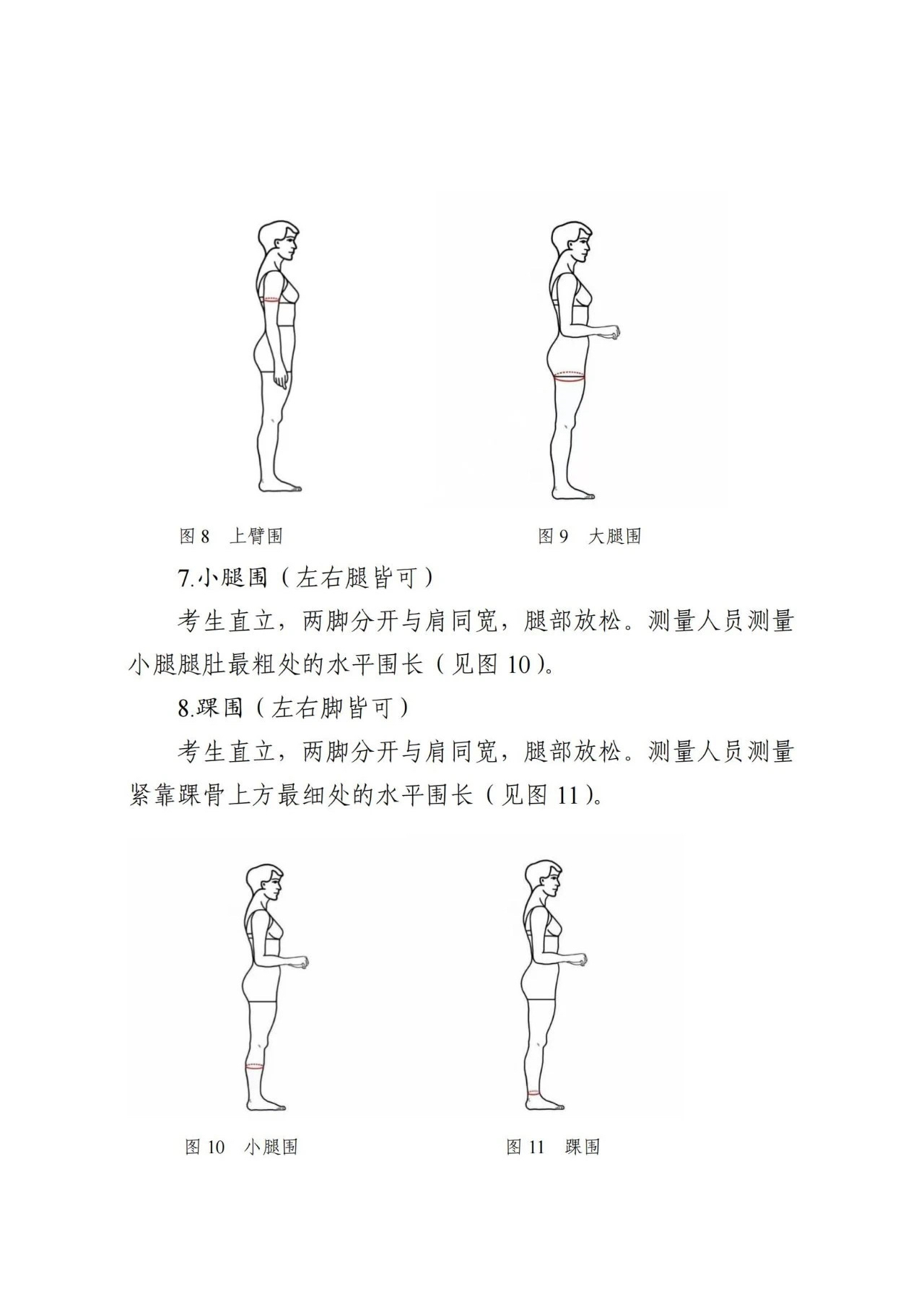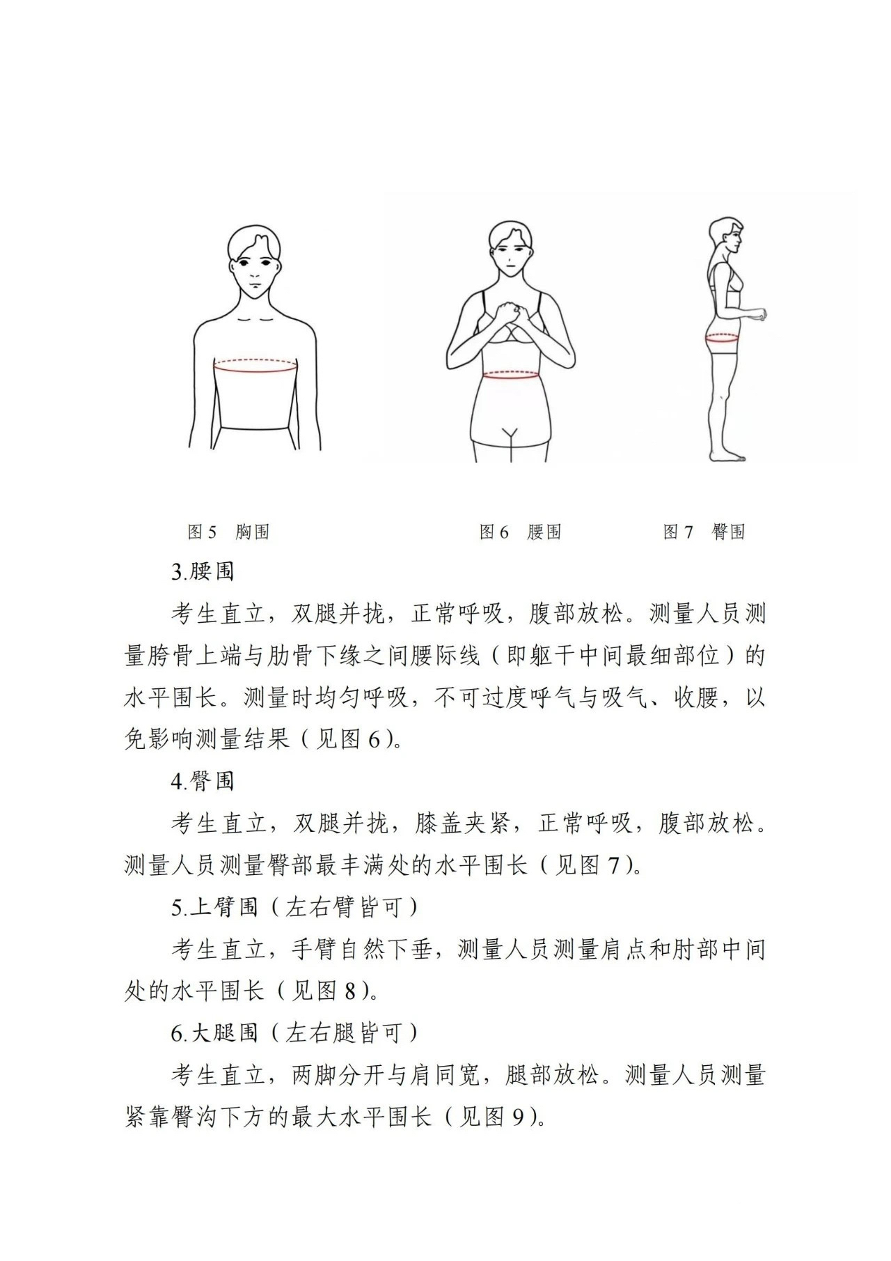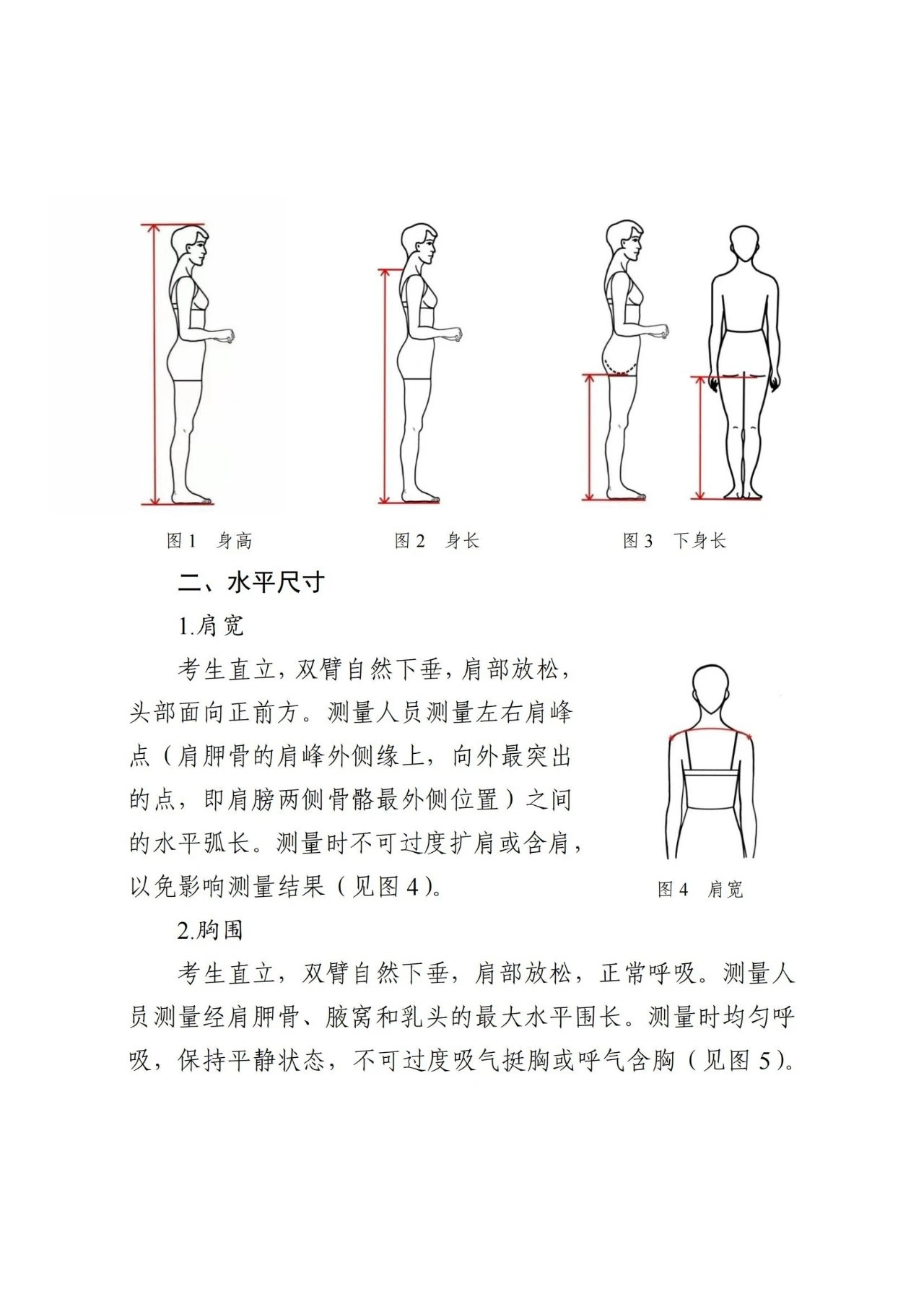 形体测量时,上身呈裸身状态,下身穿着肉色或白色内裤。考生如有纹身、疤痕或者胎记情况应如实向工作人员说明,详细描述具体位置和大小面积。