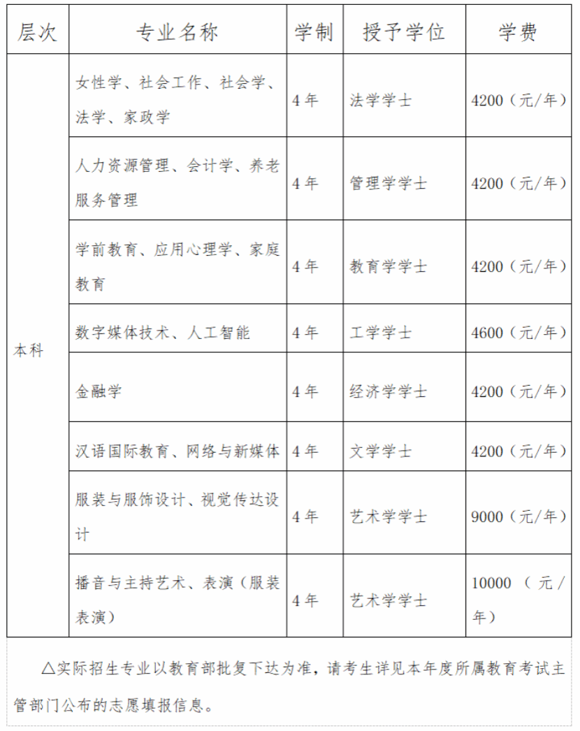 第十条 学校本科播音与主持艺术专业男女兼招,不设性别比例限制,其余各专业只招收女生。